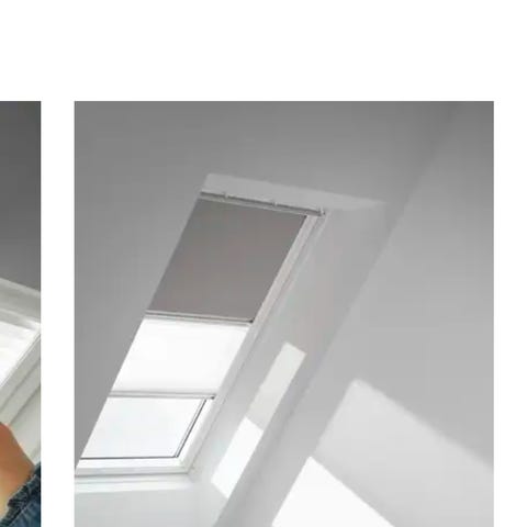 Velux duogardin 2-i-1 hvid/sort med hvid aluramme.