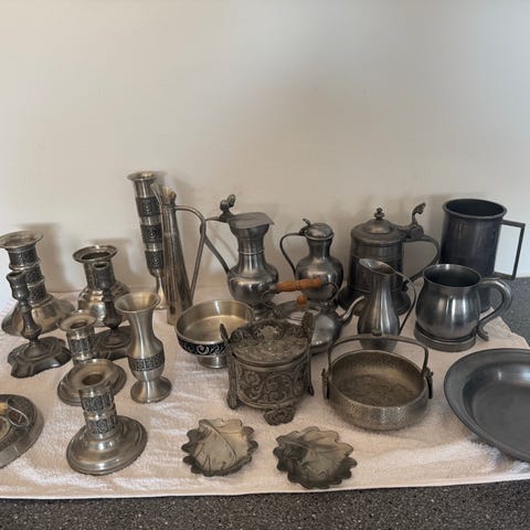 Fine sager sælges samlet til dig der afholder loppemarked, kander, lysestager mm.