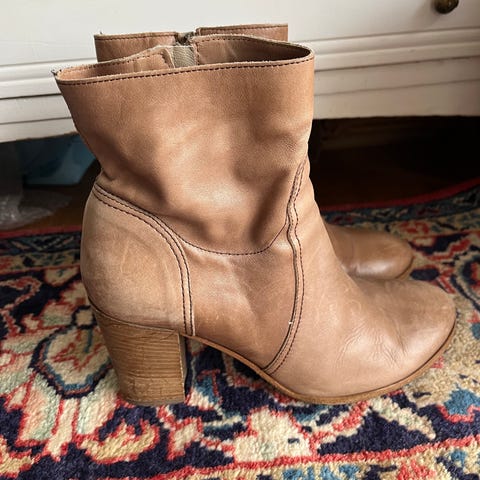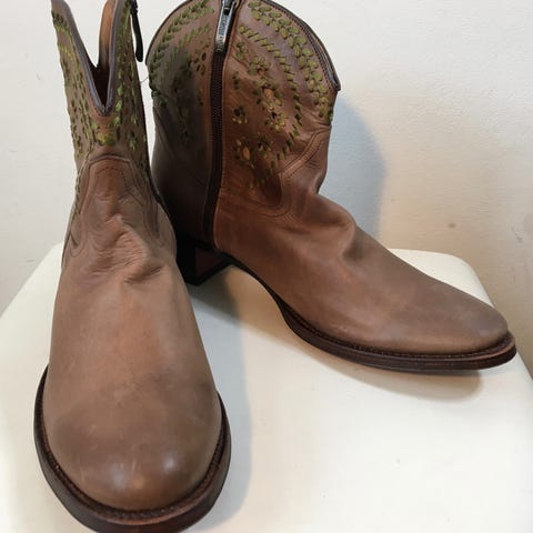 Støvler i håndsyet læder, næsten ikke brugt. De er købt for mere end 25 år siden hos Lædersmeden, hvor tilsvarende støvler koster 2200 kr. De er af syet af Tony Mora i Spanien. Ægte vintage. Et super godt køb! Kan prøves og afhentes i Nansensgade, København.