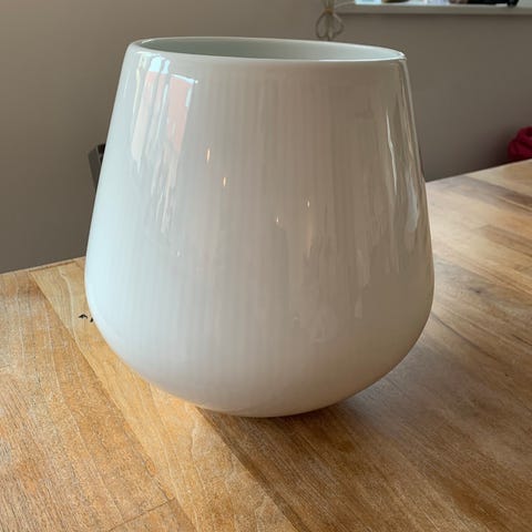 Hvid riflet vase 15 cm i original emballage. 1 sortering. Har aldrig været brugt.