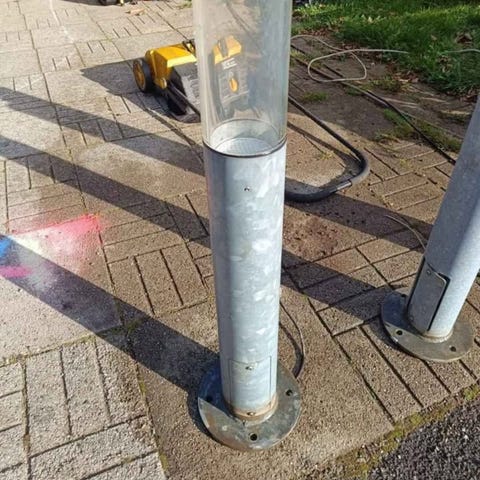 Lampen har hængt i Nakskov gågade og er klargjort til at hænge over fx et spisebord.. der mangler kun at blive sat en ledning på.