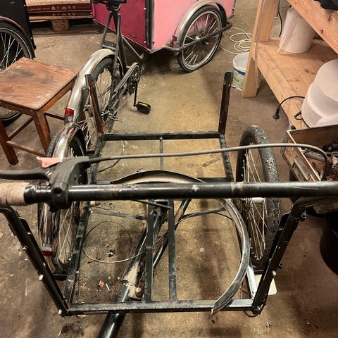 Den er ikke stjålet eller noget, men baghjulet er kaput
