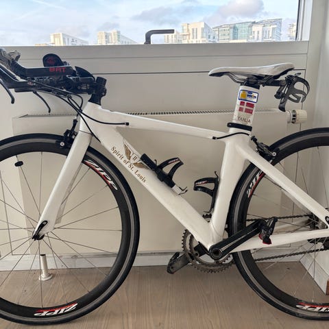 Der tilhører diverse dele , ekstra sæde , Speedplay Clics , ekstra kæde og pumpe + geargruppe samt sko.