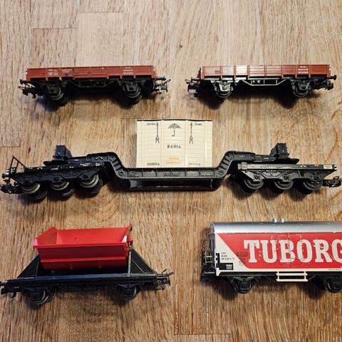 Märklin Modeltog Godsvogn med beige tæppeovertræk. Modellen er detaljeret og egnet til modeljernbaneopsætninger. Godsvognen har slidte områder på tæppeovertrækket, som vist på billederne , uden æske.