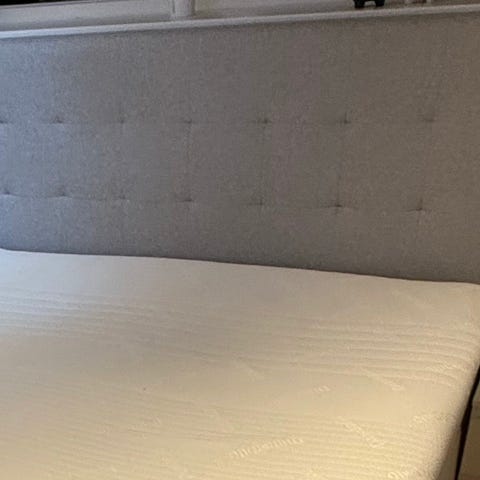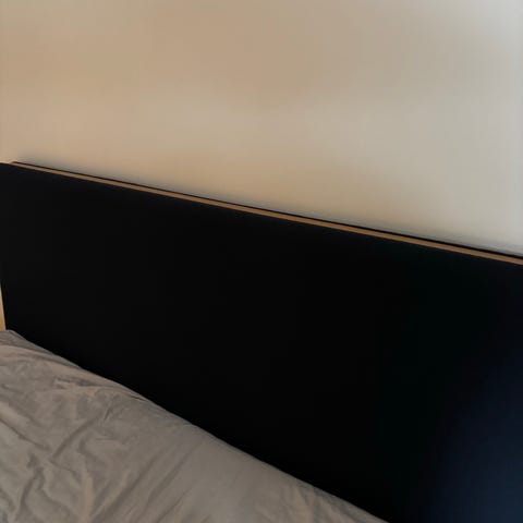 Sengegavl sort stof. Dunlopillo. Passer til en enkeltseng.