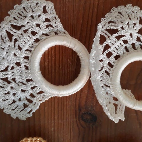 4 stk kniplede mellemlægsservietter ca 15 x 15. Håndknipling