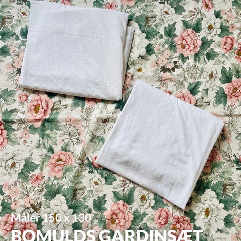 Hvidt køkkenvindue gardin sæt, eller til et værelse hvor sollys må komme ind. Består af to længere fag og et kort, som er smule mørkere end de andre fag