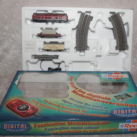 Sættet er brugt men fremstår nærmest som nyt. Sættet indeholder Diesel lokomotiv BR 215, 2 godsvogne, skinner til en oval på 100x115 cm, strømforsyning, computerenhed og kontrolenhed LokMaus 2. Leveres i original æske.
