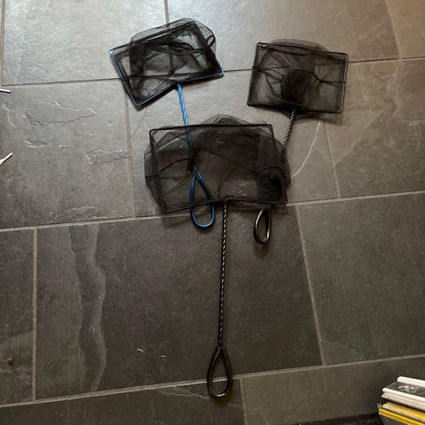 Akvarier flere med sten, pumpet og lamper og bord. Haster skal hentes inden søndag