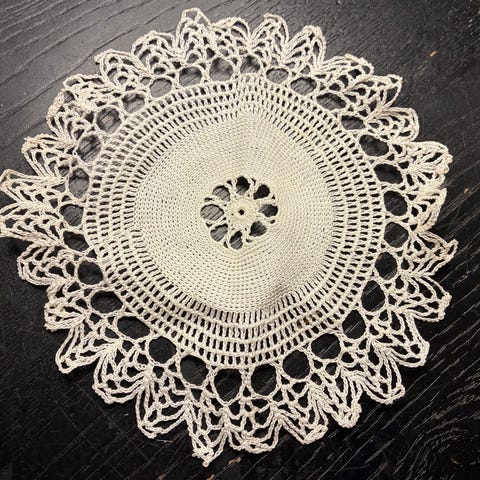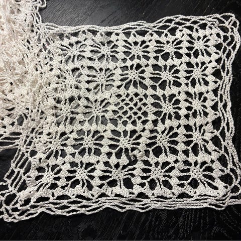 1 fint kniplet mellemlægsserviet ca 15 x 15. Dug