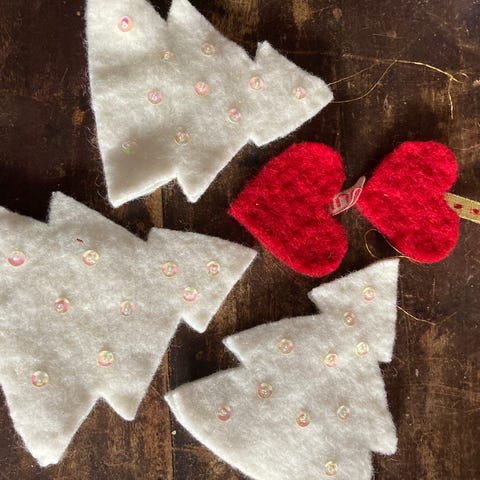 Fine ophæng i filt - jul - juletræer, fugle, rensdyr, hjerter