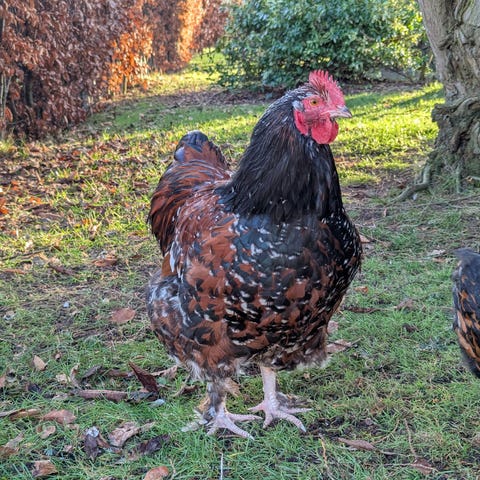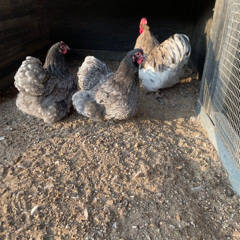 Sølvsortsømmede Orpington høner, stor race, fra 2025, i begyndende æglægning.