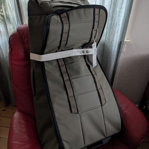 db, db journey, douchebags, hugger, hugger roller bag, roller bag, check in bag, kuffert, stor kuffert, rejsekuffert, rejsetaske, trolley, 90l, 90 liter kuffert, kabinekuffert, rejseudstyr, rejsetaske med hjul, rejsekuffert stor, grøn kuffert, forest green kuffert.