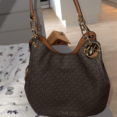 Michael Kors One Size. Tasken har en rummelig hovedlomme med lynlås, en udvendig lynlåslomme på bagsiden, og forskellige rum i tasken.