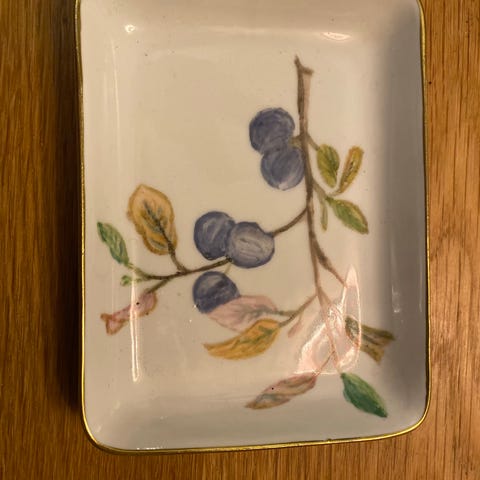Fad skål. Lille skål, Fad med blomster. Glas. Smukt guld kant.