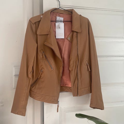 Skindjakke, str. 40, L'ESPRIT Paris, NY/UBRUGT SORT, ÆGTE SKIND - SMUK EKSKLUSIV SKINDJAKKE i EKSTRA LÆKKER KVALITET - MEGET BLØDT SKIND - FLOTTE DETALJER - KAN LUKKES OP OM HALSEN - NY/UBRUGT. Nypris 8.995,-