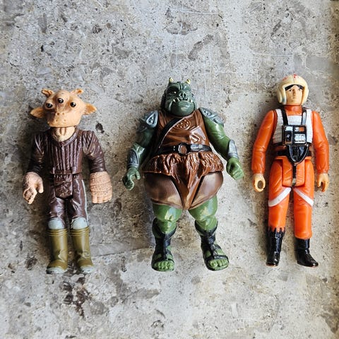 Star Wars actionfigurer i en samling bestående af forskellige karakterer fra serien. Figurerne varierer i størrelse, farve og design, herunder både humanoide og ikke-humanoide figurer. Materialet er plastik, og figurerne er velegnede til samling eller leg.