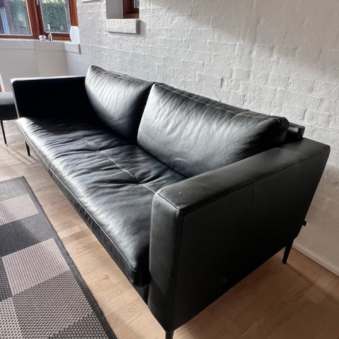 Marstrand sofa fra Ilva, sort læder og ben i eg.