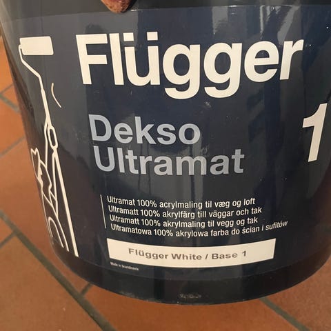 Flügger Dekso 1 er en ultramat væg- og loftmaling der ikke gulner.