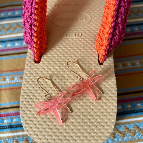 Flotte håndlavede glimmer plexiglas øreringe - købt på kunsthåndværkermarked.