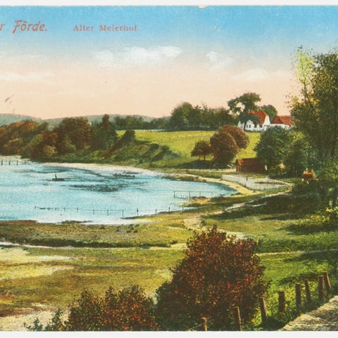 Færgeoverfarten blev oprettet i 1903 og dette kort er anvendt i 1904, Kvinder i folkedragt fra Norge, Sverige, Danmark og Tyskland. Stemplet med Kjøbenhavn-Warnemünde stempelog sendt til Købehavn men frimærket dampet af. Forsendelse 30 kr., køb flere kort og spar porto.