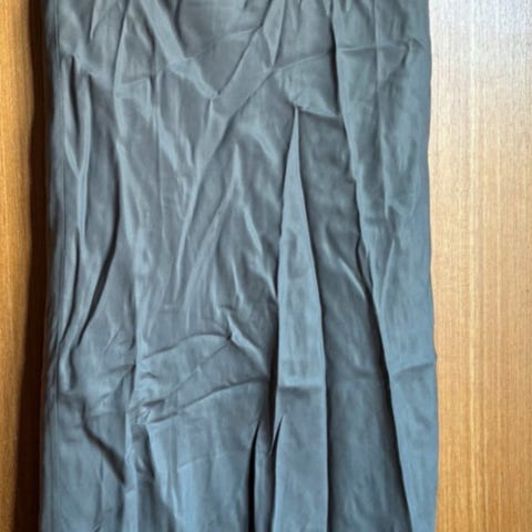 Nederdelen har A-snit og behagelig bred elastiktalje. Pasform: Nederdelen er designet på en måde, hvor stoffet er skåret på skrå (bias cut), hvilket gør at den falder ekstra. Desværre for stram til mig.