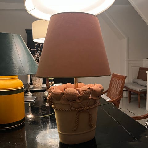 Fin Lampe der giver et behageligt og hyggeligt lys. Modellen er LAMPE A POSER PORTINATX L TERRACOTTA og koster 2200 kr for ny.