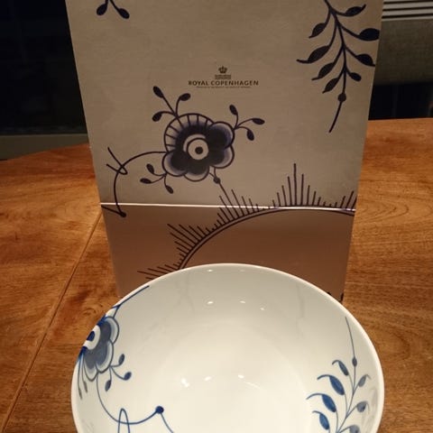 Skål m. låg Ø 19 cm. 140 cl. Blå Mega mussel i original emballage. Som ny, er aldrig blevet brugt.
