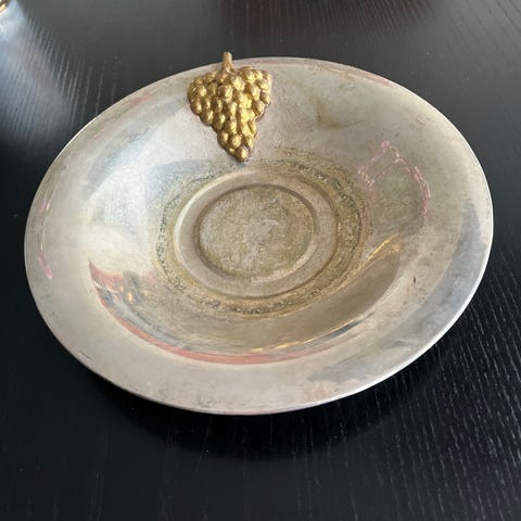 Vindrue fad, Superflot fad beregnet til vindruer - glas Holmegård? I røgfarvet / lilla. Længde 22,5 bredde 21.