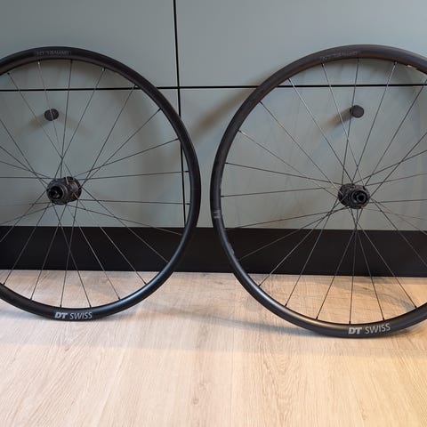 DT Swiss GRC 1600 spline carbon gravel hjul med 350 nav og Ultegra / Grx skiver i 160 mm. Shimano body. 42 dybe og 24mm indvendig bredde. Medfølgende Vitoria terrano dry dæk i 47mm sat op tubeless med Silca.