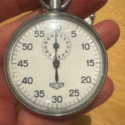 Stopur, Heuer, Rigtig fint mekanisk stopur, fungere perfekt