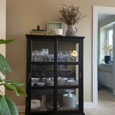 2 fine vitrineskab på Metod stel og Bodbyn låger .. med glashylder og lys