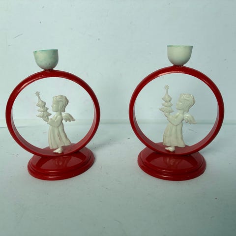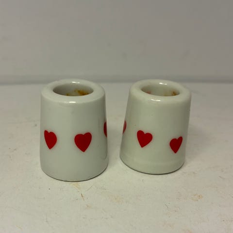 2 små lysestager fra 80’erne til små julelys porcelæn med røde hjerter Retro