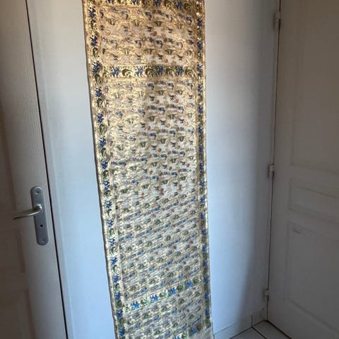 Usbekisk Suzani-tekstil er en af de smukkeste folkekunsttraditioner i verden, men disse værker er mere end blot kunst og håndværk. De har en særlig betydning, der er knyttet til et folk og deres traditioner. Dette livlige håndlavede værk er lavet af silke og blev skabt omkring 1960. Det ville være et perfekt gobelin til vægge, borddækning eller sengetæppe. De fantastiske farver og naturinspirerede designs er perfekte til traditionelle eller moderne stiltrends.