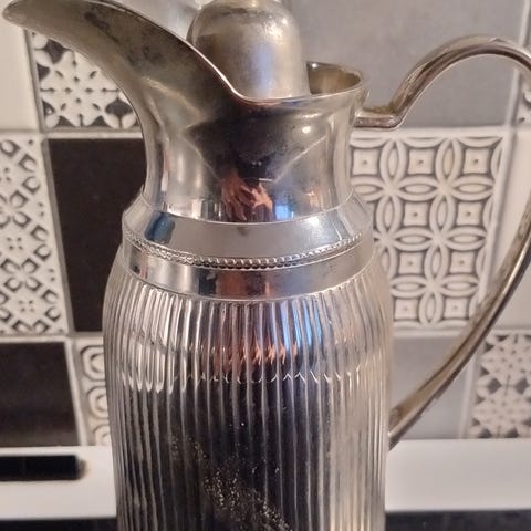 🇬🇧 Engelsk Retro. Mega lækker engelsk termokande fra 1960erne med mange gode detaljer. Udseende taler for sig selv 💙 Fremstår i flot stand både ind- og udvendigt. Kun minimale alderstegn. 29 cm høj inkl. kop.