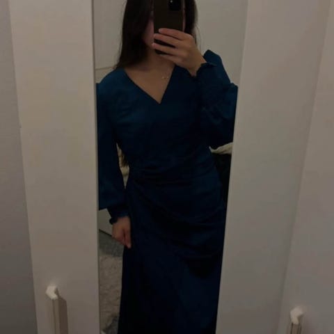 Blå kjole og sjal sælges