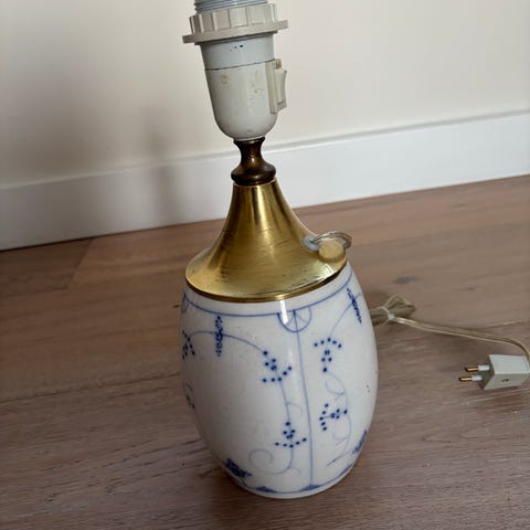 Lampe, Villeroy & Boch, Bordlampe eller vase i porcelæn med bronze lampeindsats. Villeroy & Boch wallerfangen. Lampen er 50,5 cm højen / selve vasen er 28 cm høj og den er 15 cm i dia.