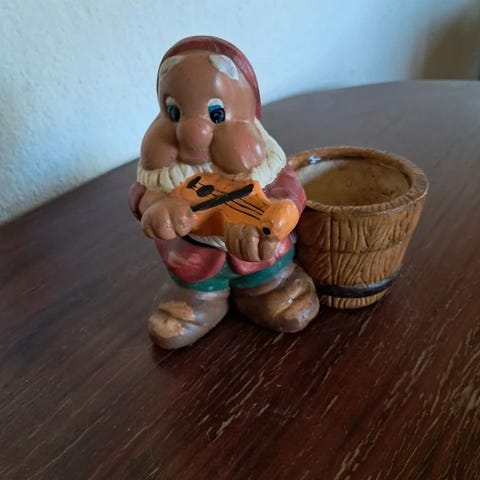 Højden er ca. 12 cm (let vægt). Figuren er formentlig fra 1980’erne–2000’erne og har en hyggelig vintage-stil.