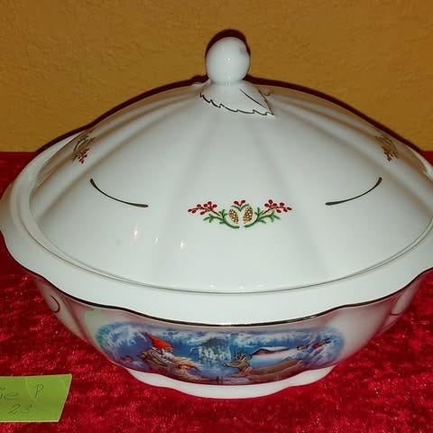 Jeg sælger disse 2 fine suppeterriner fra Firkløveren gammeldags jul, med mål: