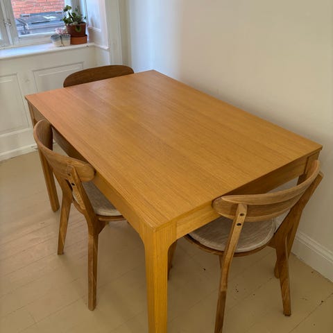 Mangler pladen som kan sættes i. Ellers et fint bord. (Stole medfølger ikke).