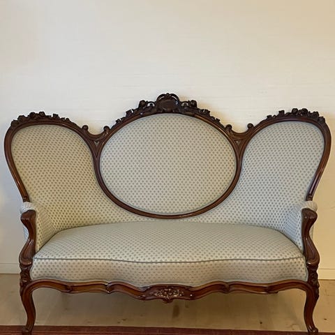 Det varme mahogni giver rummet karakter, mens de organiske linjer skaber en blød og harmonisk atmosfære. Et møbelsæt som dette er ikke bare noget, man stiller ind i et rum – det forandrer rummet. Det tilfører historie, elegance og en rolig tyngde, der kun findes i ægte antikke kvalitetssnedkermøbler.