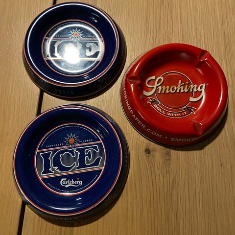 Dette er et sæt af tre glas askebægre, hver med en størrelse på 9x7,5 cm. Askebægrene har en elegant og simpel design, ideel til brug i hjemmet eller som samlerobjekt.