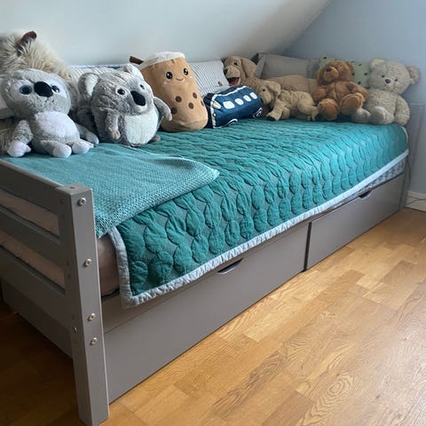 Fantastisk børneseng og madras (Dunlopillo), 90cm x 200cm, købt oktober 2022 til vores datter på dengang 6 år. Sælges kun da vi nu har brug for en bredere seng til hende.