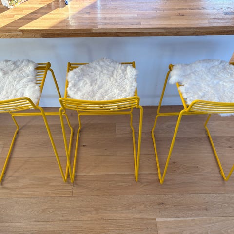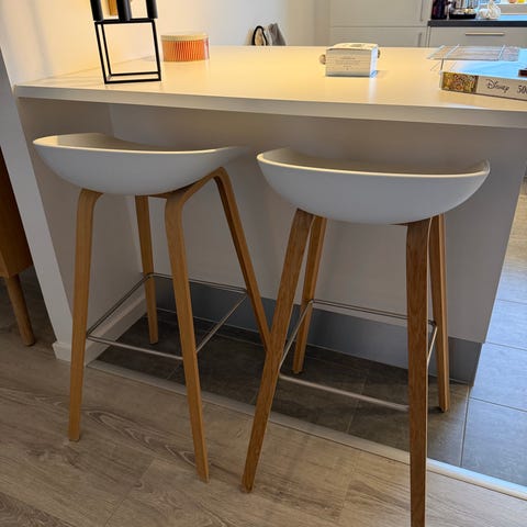 Super fedt Hay sæt i rigtig god stand. Stolene er den høje model på 75 cm, som passer perfekt til bordet. Ingen skrammer eller noget på bordpladen. Det er kun 2 år gammelt. Købt fra ny, så rigtig god pris. Sælges samlet. Kan afhentes og ses i Ringe.
