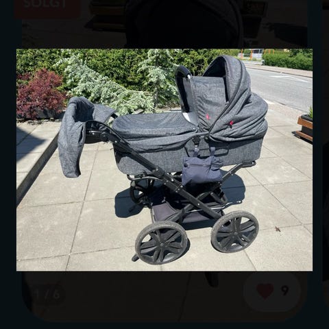 Odder barnevogn i farven grå melange. Der medfølger: