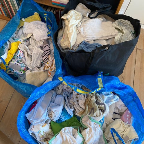 Masser af moderne stofbleer i forskellige størrelser og af forskellig type. Alt til at prøve det af og blive klogere på hvad der fungerer. Jeg har selv overtaget det brugt men desværre ikke fået det brugt, så nu må det videre til nogen der har overskud og mod på at bruge det.