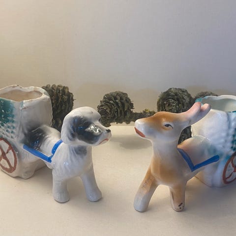 Jul retro retrojul dekoration julepynt teakfigur hjortefigur nisse nissedukke keramikpige keramikfigur fugl spurve julekugle