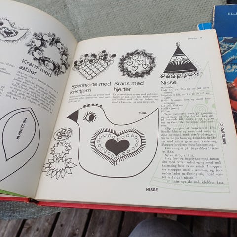 Bogen er skrevet af kreative Lis Paludan, som har udgivet et hav af håndarbejdsbøger. Den er udgivet i 1971, og det er lidt sjovt at se billederne af borddækning,som bruger det rustikke finske stel Ruska fra Arabia, som har fået en opblomstring de sidste mange år.