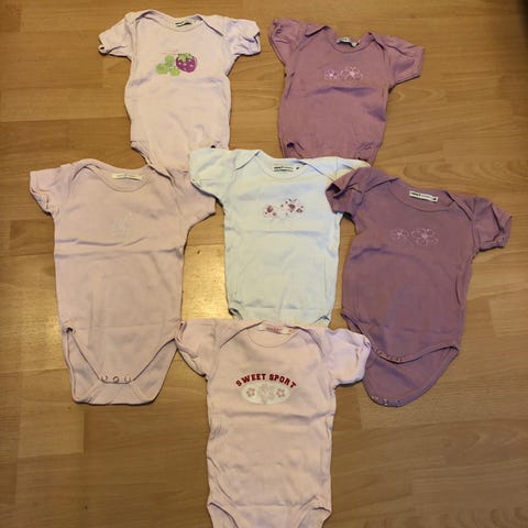 To helt nye bodyer fra name it i super lækkert blødt stof. Den ene er støvet lyserød og den anden er cremefarvet med lyserøde hjerter på. Sælges samlet