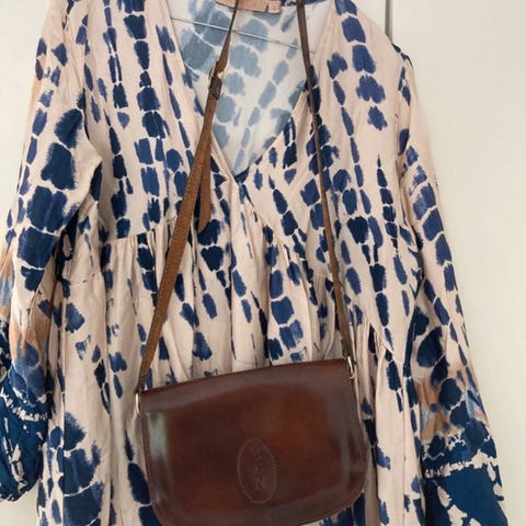 Meget fin og fed vintage lædertaske i 2 nuancer. Meget rummelig og masser af lommer. I god stand.
